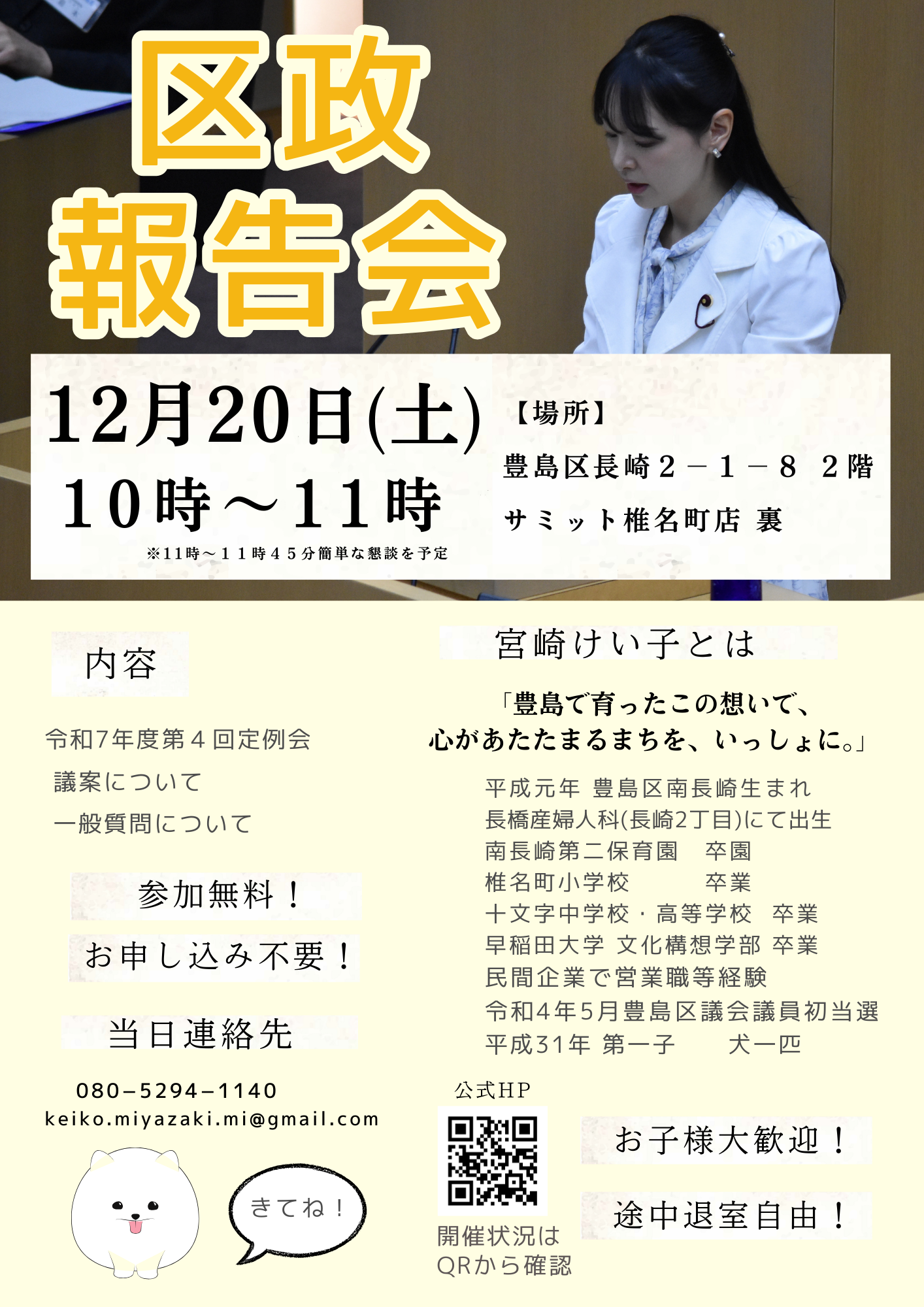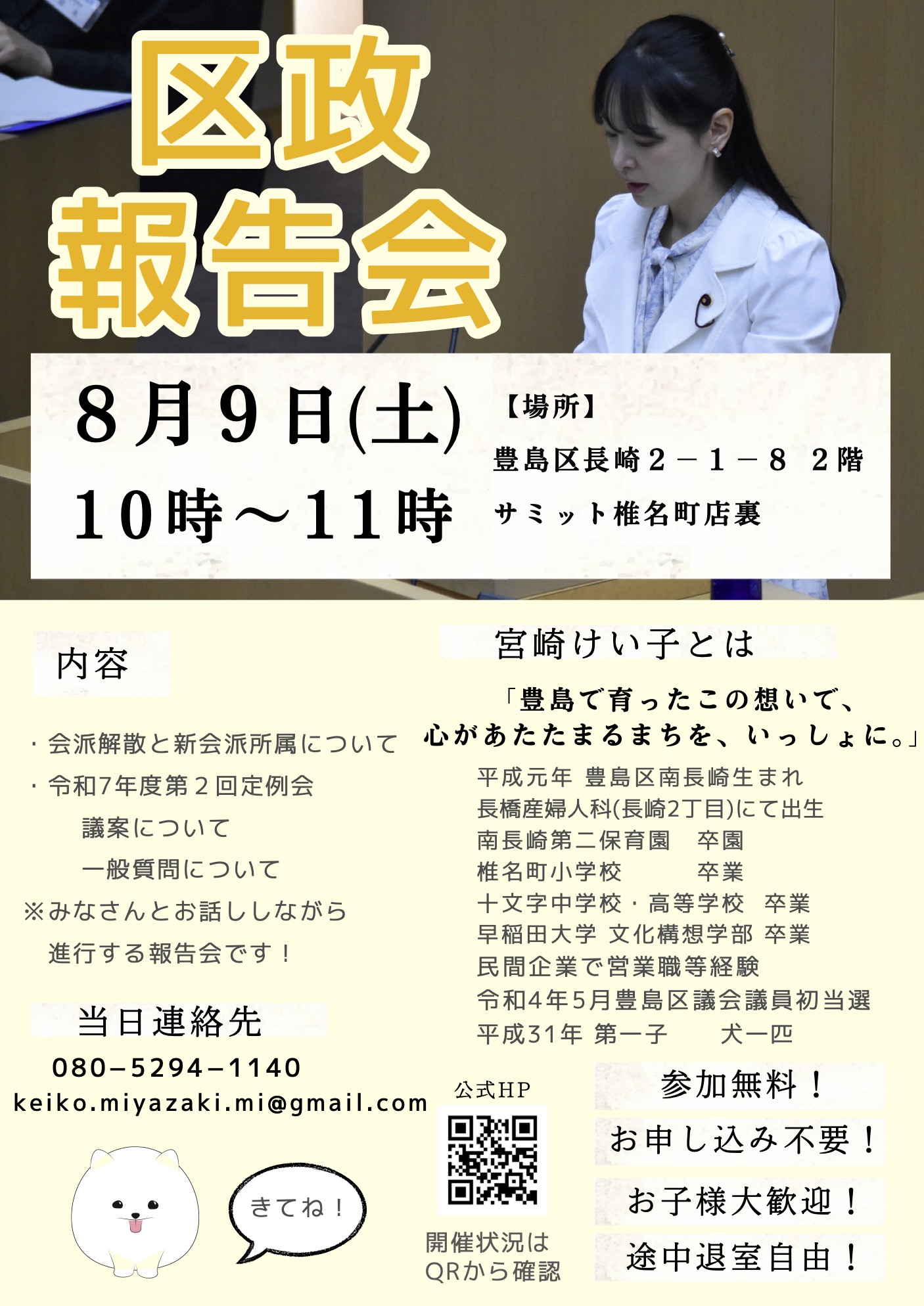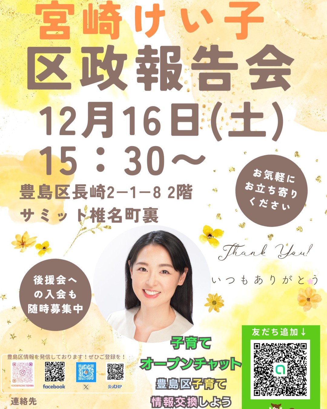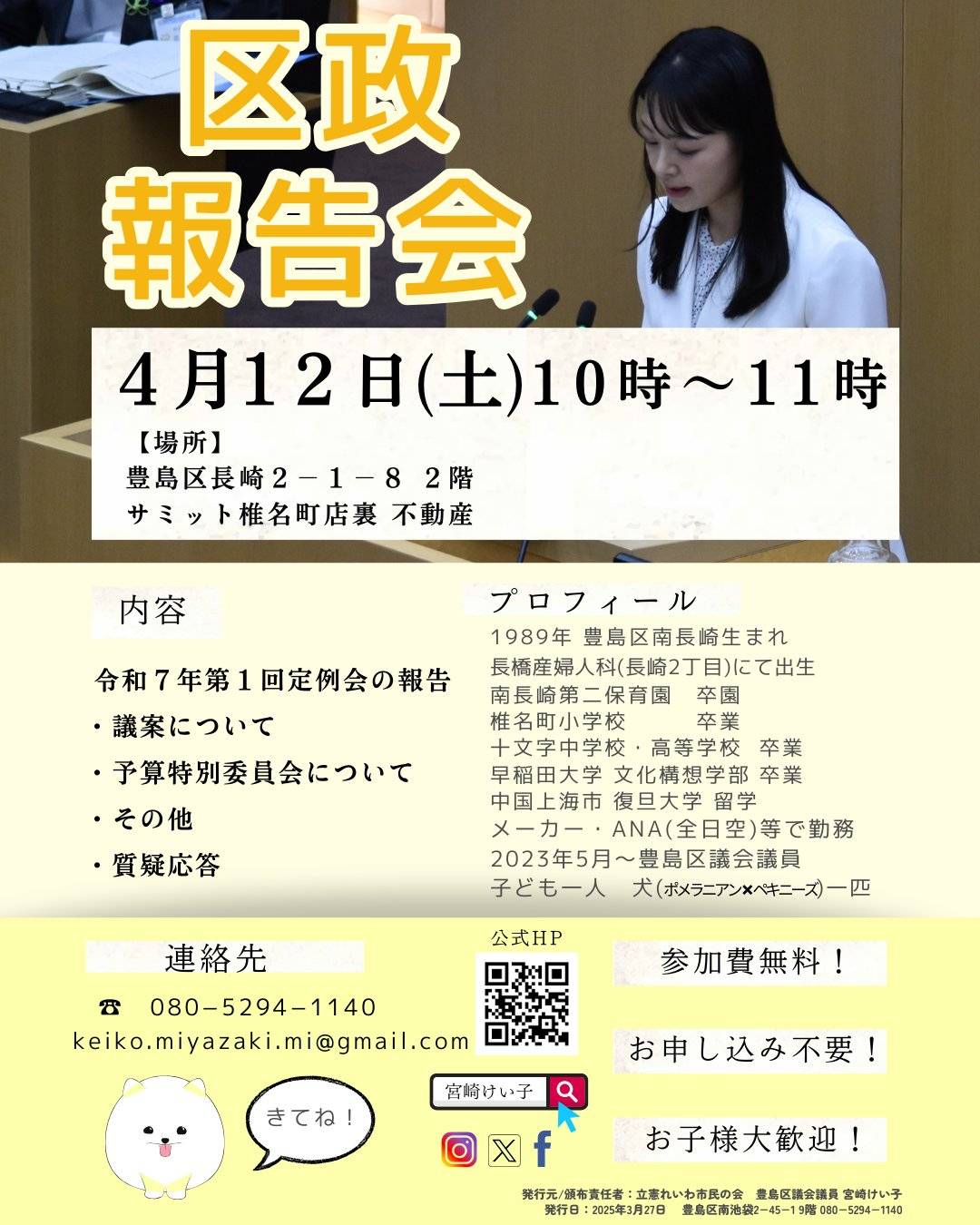 区民の声を聞く場所や機会をつくり区政に届けることが私の役目です。年代や性別、国籍、障害の有無など多様性を尊重しさまざまな人々と協働し、より良いまちづくりを共にしていきましょう。